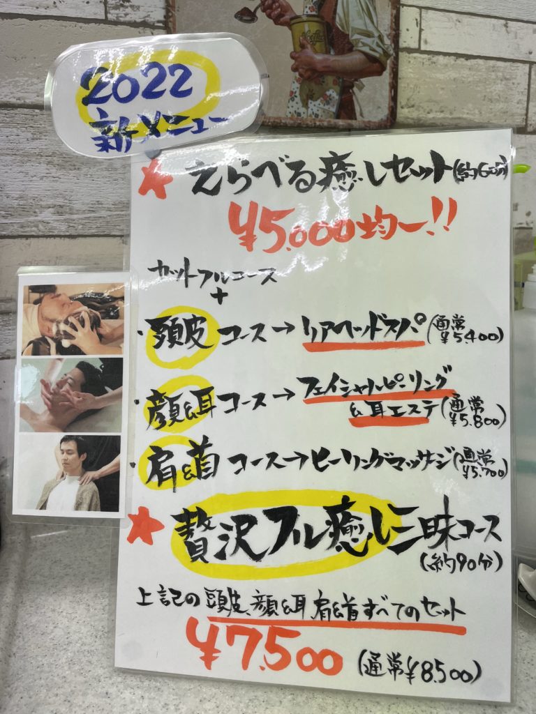 昨年まではカットコースにプラスしてオプションメニューとしてお客様に選んでいただきましたが、選べる癒しセットメニューとして、今までご体験の方はもちろん、未体験の方に少しでも当店で癒されていただきたいと言う思いで選べる癒しセット¥5000均一&贅沢フル癒し三昧コースを始めました♪