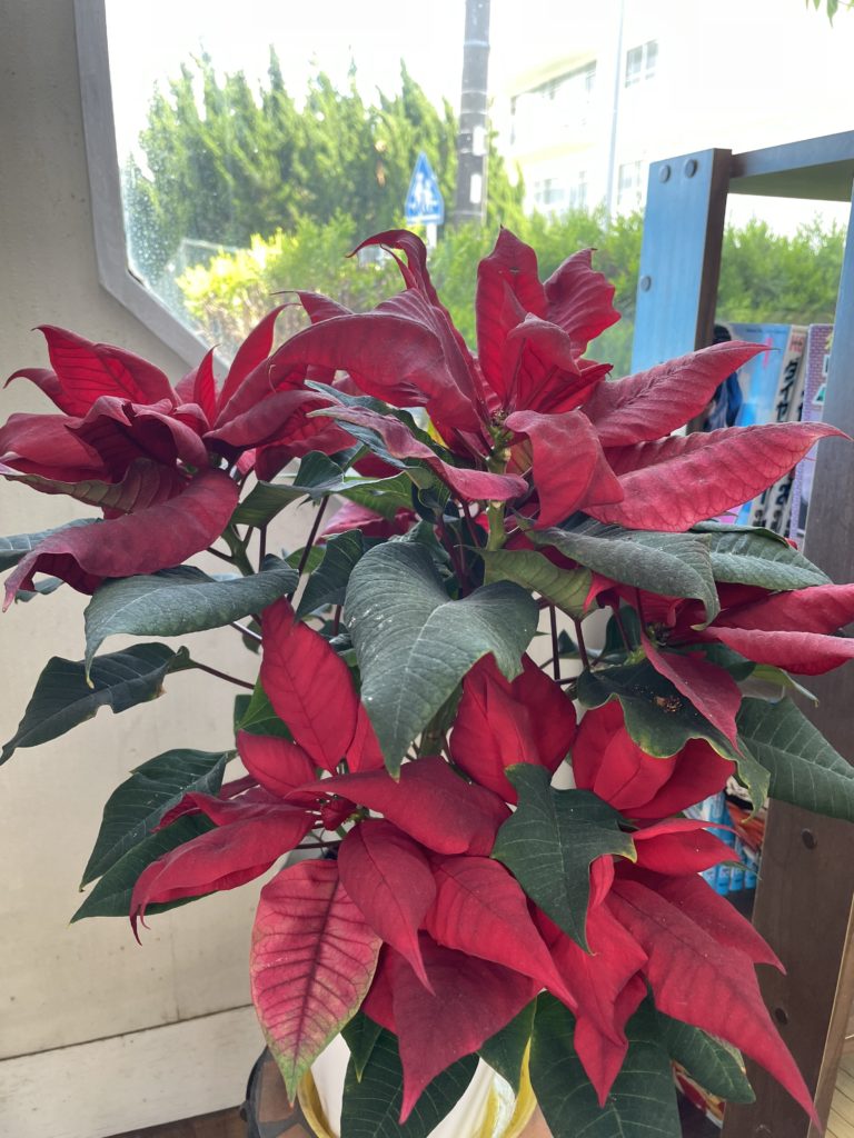 店内のポインセチアが昨年12月からまだ元気で咲いています^ ^ ずっと室内で週2回の水やりしかしてないのですが^ ^;